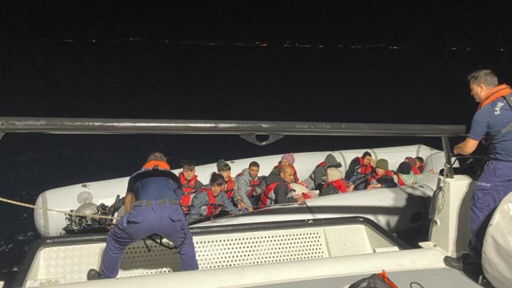 Görevlendirilen Sahil Güvenlik botu “TCSG-907” ekipleri, lastik botu durdurarak içindeki 18 düzensiz göçmeni yakaladı.